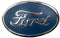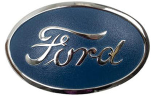For Ford Front Hood. Chrome lettering with blue background, stamped 2N below Ford script.