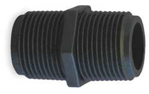 Banjo NIP025SH Nipple, Pipe Size 1/4" Connection MNPT, Color Black, Temp. Range -20 to 150 Deg F, Length Short, Material of Construction is Polypropylene Max. Pressure 150 at 70 Deg F, PSI Schedule 80