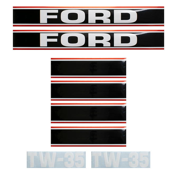 Decal Set for Ford TW35 Mylar - Black & Red - Hood Only