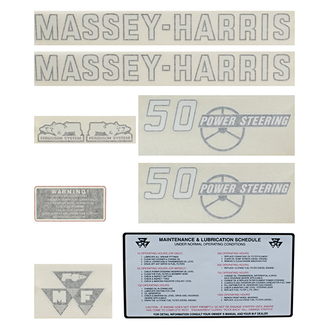 Decal Set for Massey Harris 50 w/ Power Steering Vinyl