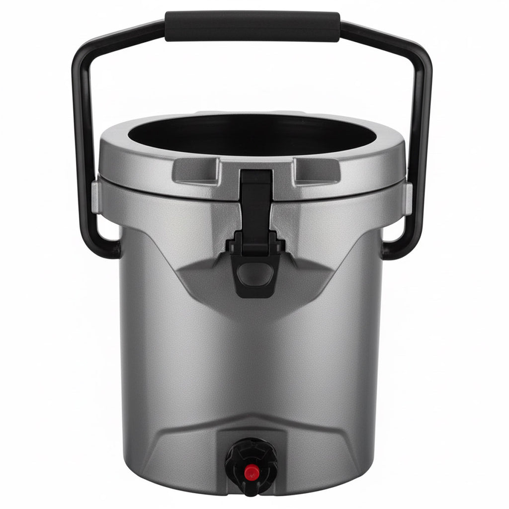 Water cooler with spigot. Includes carrying handle and backpack straps for ease of transportation. Keeps liquids cool while it heats up outside. Outside Dimension: 14" long, 12" wide, 14" tall