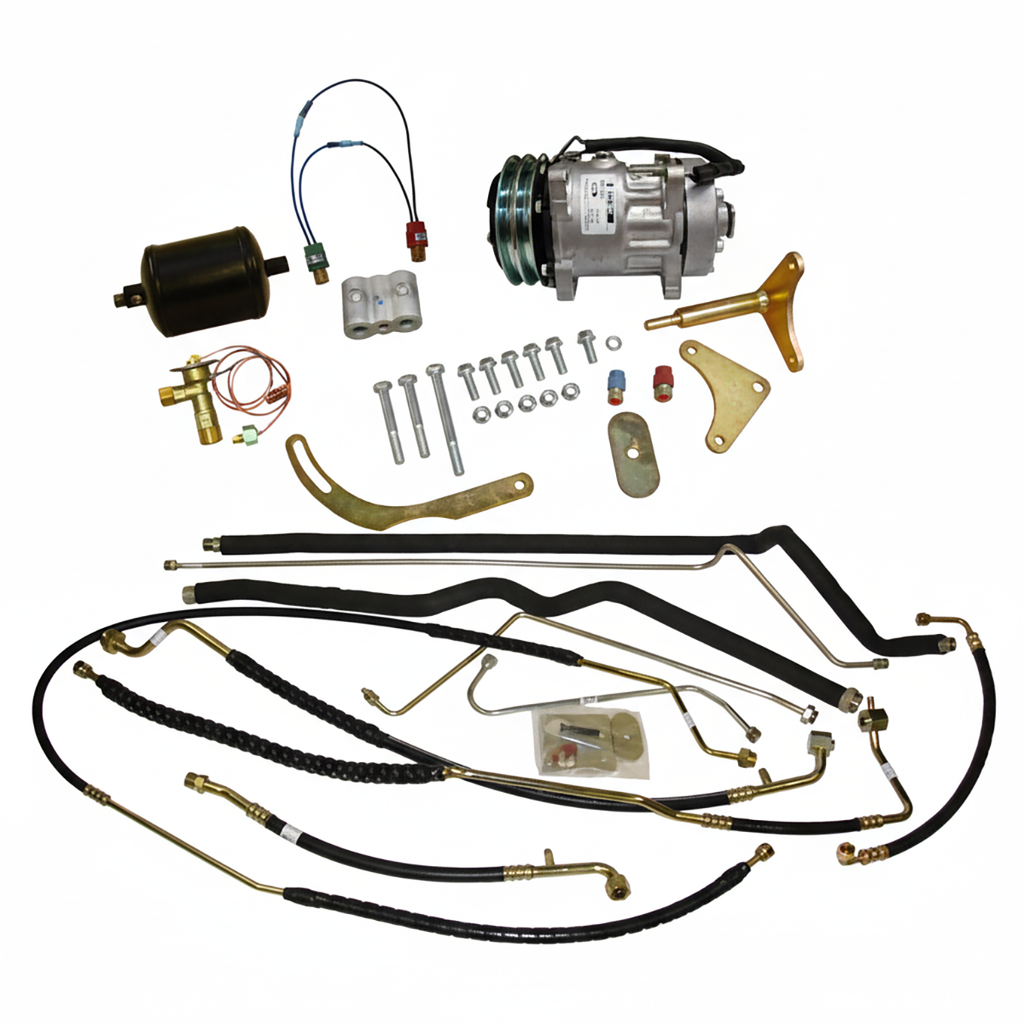 • Includes Compressor, 10 Piece Hose Kit, Receiver Drier, Expansion Valve and O-Rings