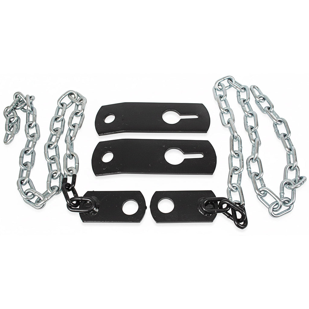 Stabilizer Kit for Mower Deck. Has 1/4" proof coil chain, 1175# Working load limit, 1/4" thick plates. Contains two brackets and two chains with smaller brackets.