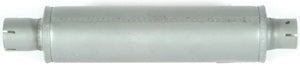 Muffler, horizontal exhaust. Inlet 2 inch I.D. outlet 1-7/8 inch O.D. 17-1/2 inch overall length. Ford 4 Cyl gas Tractors: 801, 901, 4000. Vertical exhaust for 144 CID diesel engines. Tractors: 501, 601, 701, 2000 (4 cyl, 1958-1964)