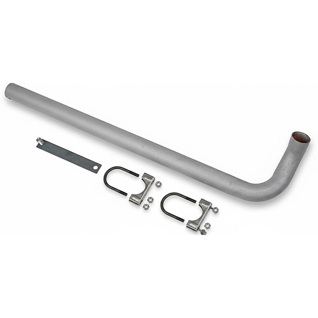Vertical exhaust pipe with clamp, less muffler. One piece pipe, makes 2-90's and up, for vertical exhaust, muffler in original horizontal position. Inlet 1-5/8 inch I.D. outlet 1-3/4 inch O.D. For 172 CID gas engines. Tractors: 801, 901, 4000 (4 cyl, 1958-1964). Use with muffler 310079.